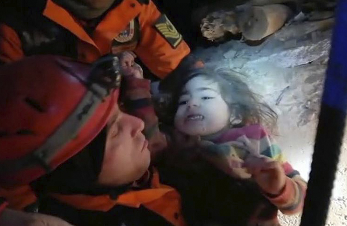 Artçı sarsıntıların sürdüğü bölgede kadın ve çocuğunun zarar görmemesi için çalışmalarını titizlikle sürdüren ekipler, annenin 2,5 yaşındaki kızını enkazdan çıkararak kurtardı.