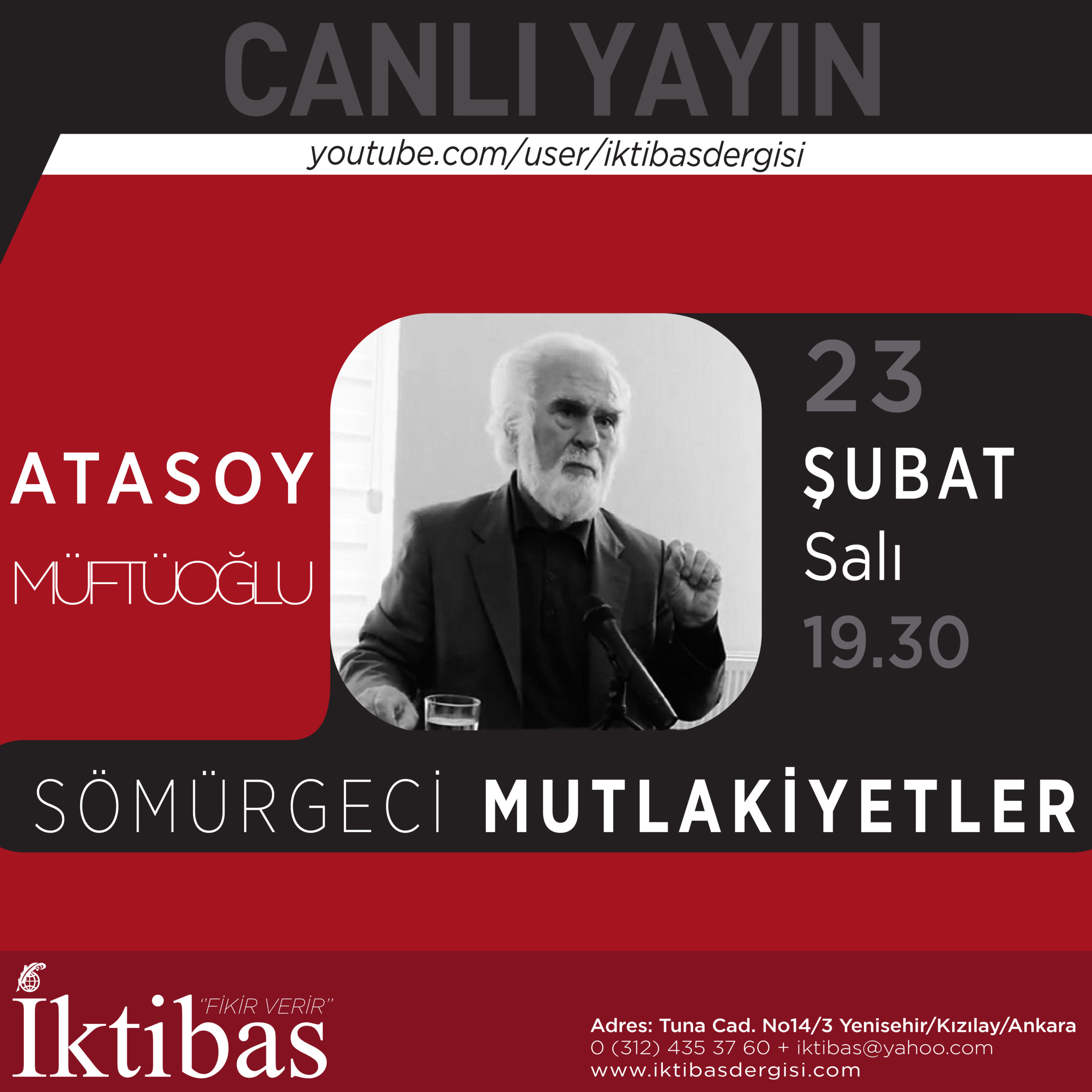 İktibas’ın Youtube kanalında canlı yayınlanan konferansların önümüzdeki Salı günü konuğu, “Sömürgeci Mutlakiyetler” konusu ile Atasoy Müftüoğlu…