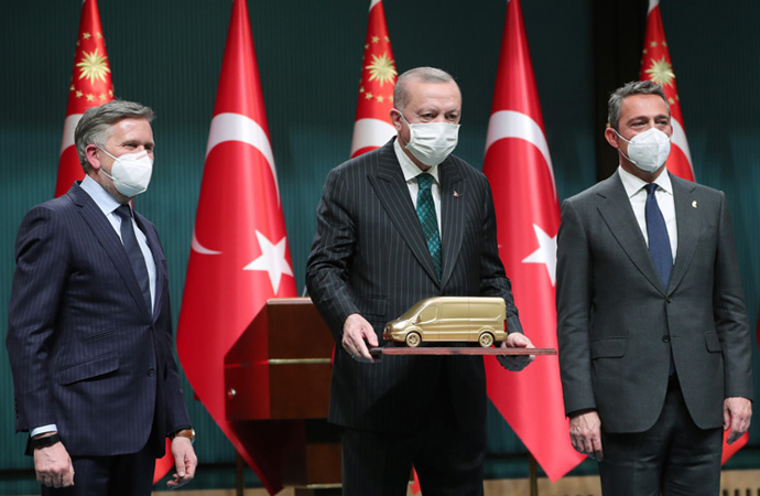 “Bu topraklarda üretim yapan, istihdam sağlayan, ülkemizin gücüne ve potansiyeline inanan tüm yatırımcılara sahip çıkmaya devam ediyoruz” diyen Cumhurbaşkanı Erdoğan, sözlerini şöyle sürdürdü: “Bugünkü imza töreni, devletimizin yatırımlarla ilgili kuşatıcı ve destekleyici tavrının en güzel örneğidir. Ford Otosan hâlihazırda Türkiye’deki otomotiv üretiminin ve ihracatının yüzde 25’ini gerçekleştirerek, 12 bin 500 insanımıza istihdam sağlıyor. Yüzde 70’i bulan yerlilik oranı, yüzde 90’a varan ihracat oranı ile firmamız, ülkemizin kalkınmasında çok kritik rol oynuyor. Türkiye otomotiv sanayinin, elektrikli ve bağlantılı araçlarla dönüşmesini sağlayacak bu yatırımla Ford Otosan; Araştırma-Geliştirme, ihracat, üretim ve katma değer etkisi 10 yıla yayılacak büyük bir vizyon ortaya koymaktadır. Proje tamamlandığında Ford Otosan’ın 440 bin olan üretim kapasitesi 650 bine yükselecek; Kocaeli’de üretilip Avrupa’ya ihraç edilen ticari araçlarda Türkiye’nin liderliği daha da perçinlenecektir. Projenin devreye alınmasıyla Ford dışında Volkswagen firması için de 1 tonluk ticari araç üretimi gerçekleştirilecek.”