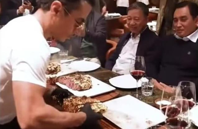 Vietnamlı Komünist Partili Bakan To Lam, İngiltere’nin başkenti Londra’da açılan Nusr-Et restoranında çekilen görüntüleriyle gündemde. Ntv’nin haberine göre, Güvenlik Bakanı To Lam’ın, Nusret’in elinden 1450 sterlinlik (19 bin lira) altın kaplama bifteği yerken çekilen görüntüleri ülkesinde tepki çekti. Görüntüler restoranın Tiktok sayfasında yayınlanmasının hemen ardından silindi.