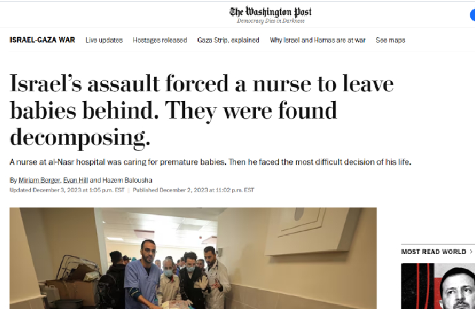 Vahşi İsrail bombardımanına hedef olan Nasr Çocuk Hastanesi personeliyle konuşan Washington Post gazetesi, hemşire ve doktorların işgal ordusundan gelen bombalama uyarılarının ardından bebekleri bırakmak zorunda kaldıklarını yazdı.