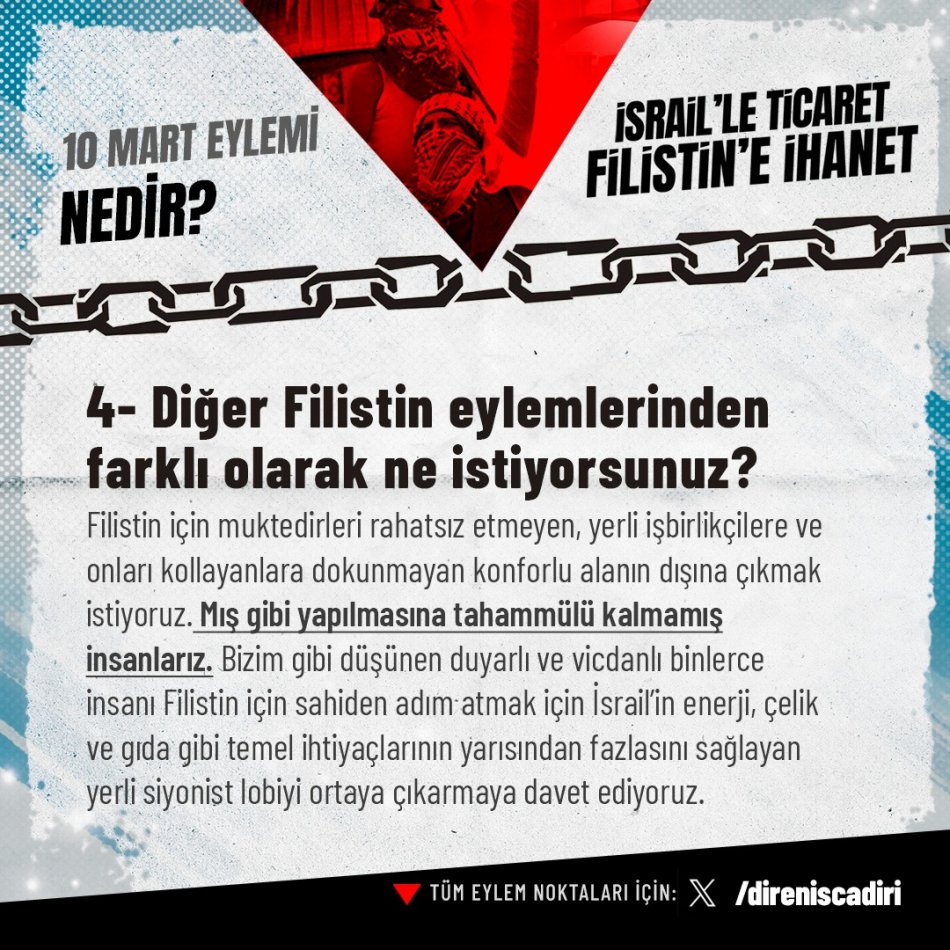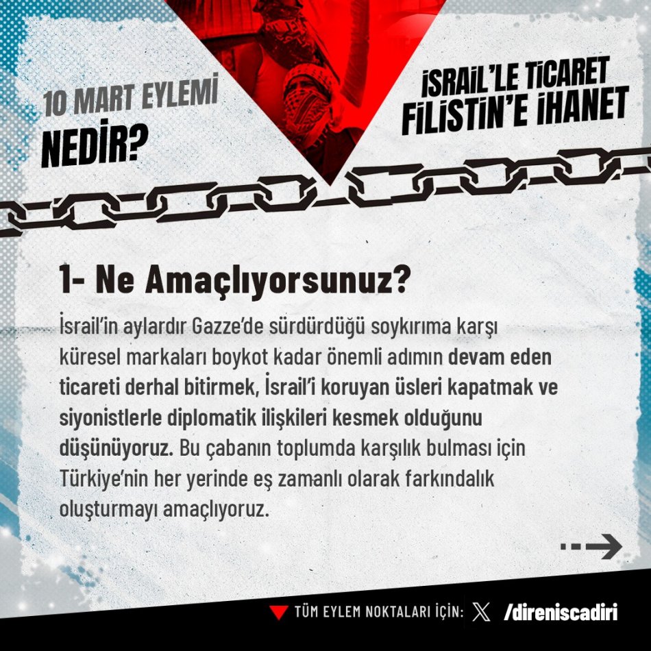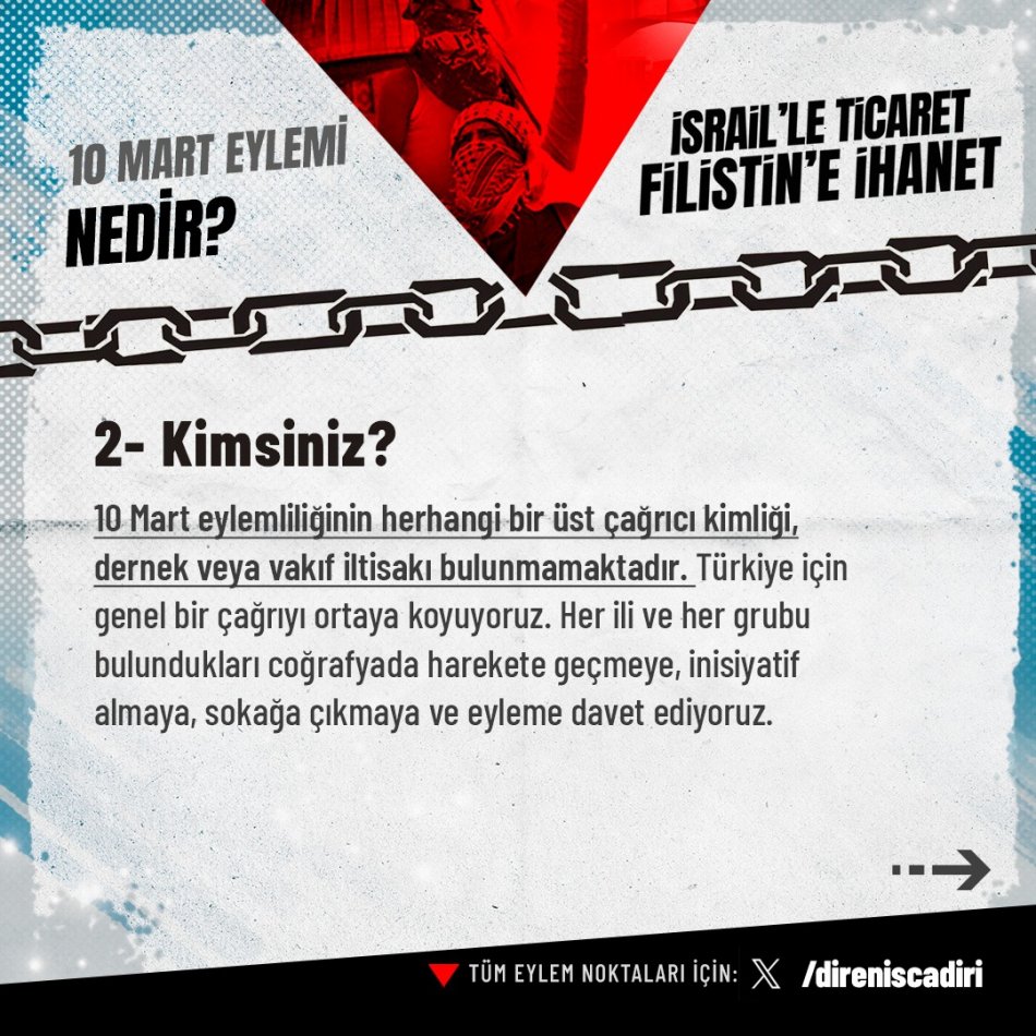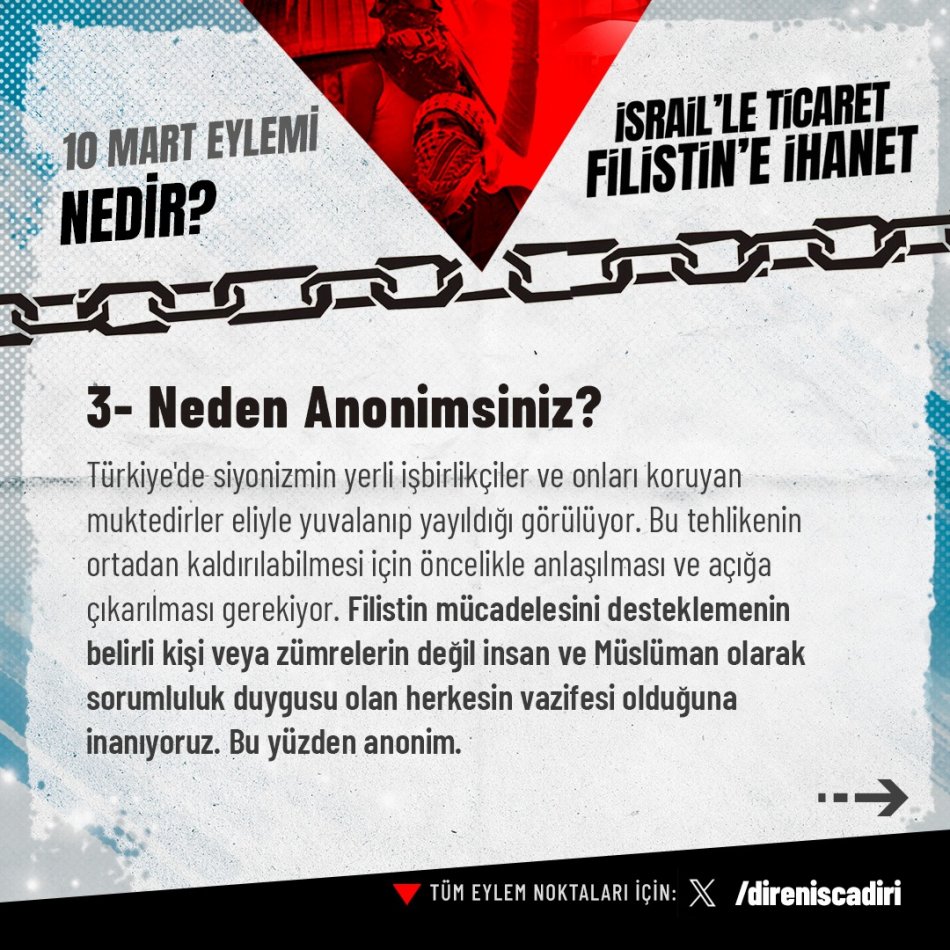 Grubun sosyal medya hesabından, 10 Mart eylemine ilişkin paylaşılan görsellerde ise, bu eylemin gerekçelerine de yer verildi: