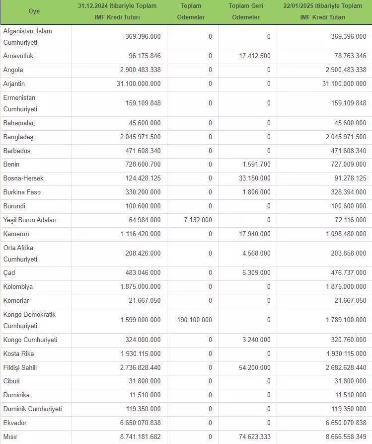 1944 yılında, ekonomik krizlerle mücadele eden ülkelere mali destek sağlama iddiasıyla kurulan küresel bir finans kuruluşu olarak faaliyet gösteren, ABD merkezli Uluslararası Para Fonu (IMF)’ye 2025’te borcu olan 109 ülkenin listesi açıklandı.