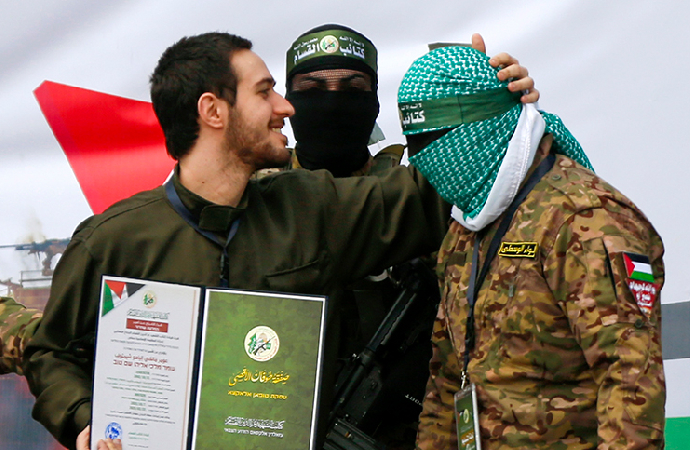 İsrailli esirlerden Omer Shem-Tov 22 Şubat’ta, serbest bırakılmadan önce platformda Kassam Tugayları mensuplarının başını öpmüştü.