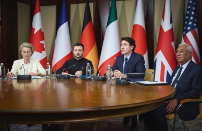 ABD’nin kurduğu Ukrayna masasına çağrılmayan Avrupa, içinde Kanada’nın da bulunduğu bir heyetle Ukrayna’da gövde gösterisi yapmaya çalıştı. Zelenskiy heyete hitaben konuşmasında, Ukrayna ve Avrupa’nın müzakere masasında olması gerektiğini, Rusya’nın stratejik hedefinin de Avrupa olduğunu savundu.
