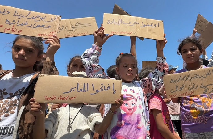 AA muhabirine açıklamalarda bulunan 11 yaşındaki Rama Ebu’l-Ayneyn, “Sınır kapılarının açılmasını istiyoruz. Açlıktan ve bombalardan ölüyoruz. Yardımların girmesi için sınır kapıları açılsın.” diye konuştu.