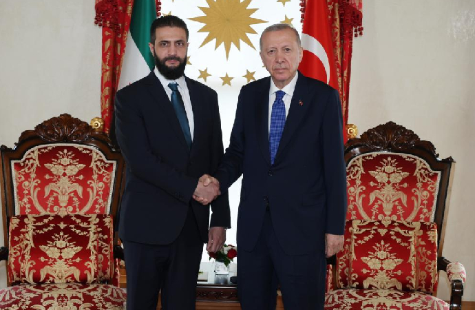 ABD ile görüşmesi öncesi Suriye Geçici Cumhurbaşkanı Ahmet Şara, Dolmabahçe Sarayı’nda Cumhurbaşkanı Recep Tayyip Erdoğan ile görüştü.
