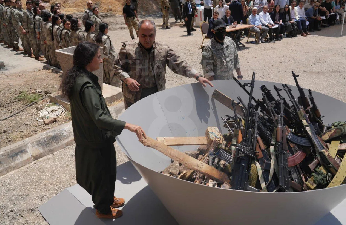 Terör örgütü PKK’nın silah bırakması ve kendini lağvetmesi olarak özetlenebilir süreçte sembolik olarak yakılan silahlarla ilgili gelinen noktayı cumhurbaşkanı “ümmet birliği”, DEM Parti “barış süreci ittifakı” olarak duyurdu…
