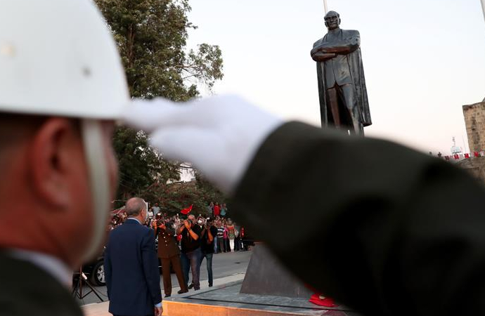 20 Temmuz Kıbrıs Harekatının yıldönümünde Kuzey Kıbrıs’a giden Cumhurbaşkanı Erdoğan için Atatürk heykeli önünde tören düzenlendi. Erdoğan ve beraberindekiler heykel önünde saygı duruşunda bulunarak çelenk sundu, İstiklal marşı okundu.