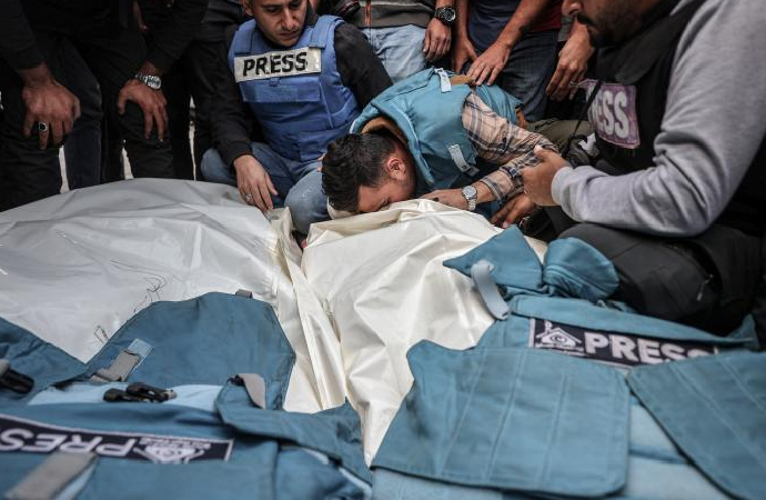 Siyonistlerin hedefinde Gazze’deki gazetecilerin olduğu vurgulanan açıklamada, gazeteciler aleyhinde yürütülen karalama ve kışkırtma kampanyasının amacının, “Gazze’deki gazetecileri hedef almak için meşrulaştırma girişimi” olduğuna dikkat çekildi.