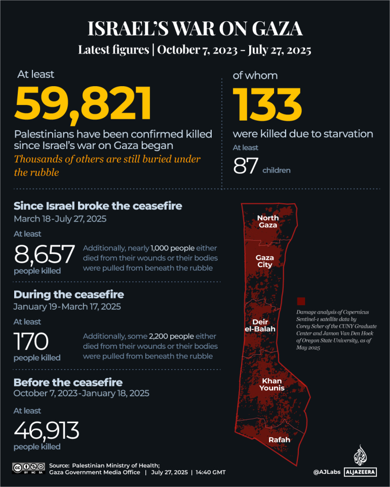 Savaşta Gazze’de en az 59 bin 821 kişi şehid oldu, 144 bin 477 kişi yaralandı.
