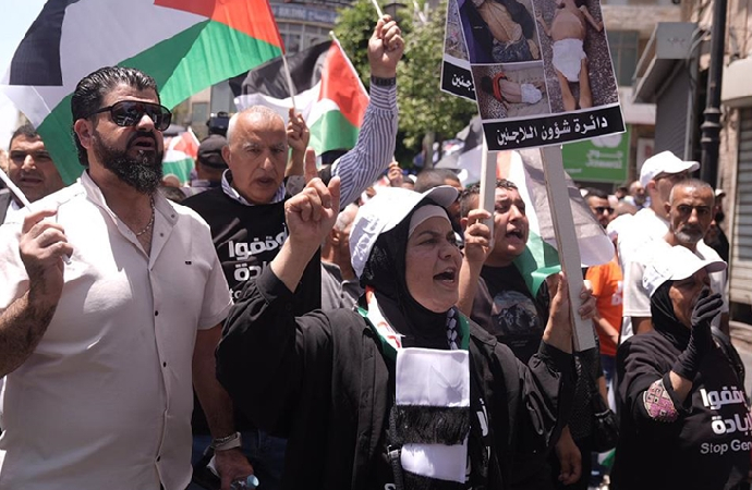 Batı Şeria’nın güneyindeki El Halil kentinde de yüzlerce kişi, İsrail’in Gazze’ye yönelik saldırılarını ve soykırım suçlarını protesto etti. Eylemciler, uluslararası kurumların sessizliğini ve hareketsizliğini “utanç verici” olarak niteledi.