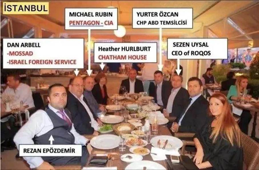 Yemekte çekilen bir fotoğrafta Epözdemir’in; MOSSAD ajanı olduğu iddia edilen eski İsrailli diplomat Dan Arbell, CIA ajanı olduğu iddia edilen eski Pentagon çalışanı ve akademisyen Michael Rubin, Londra merkezli düşünce kuruluşu Chatham House temsilcisi Heather Hurlburt, o tarihte CHP Genel Sekreteri ve milletvekili olan Gürsel Tekin ile o tarihte CHP’nin ABD temsilcisi olan Yurter Özcan gibi isimlerle aynı masada oturduğu görülüyor.