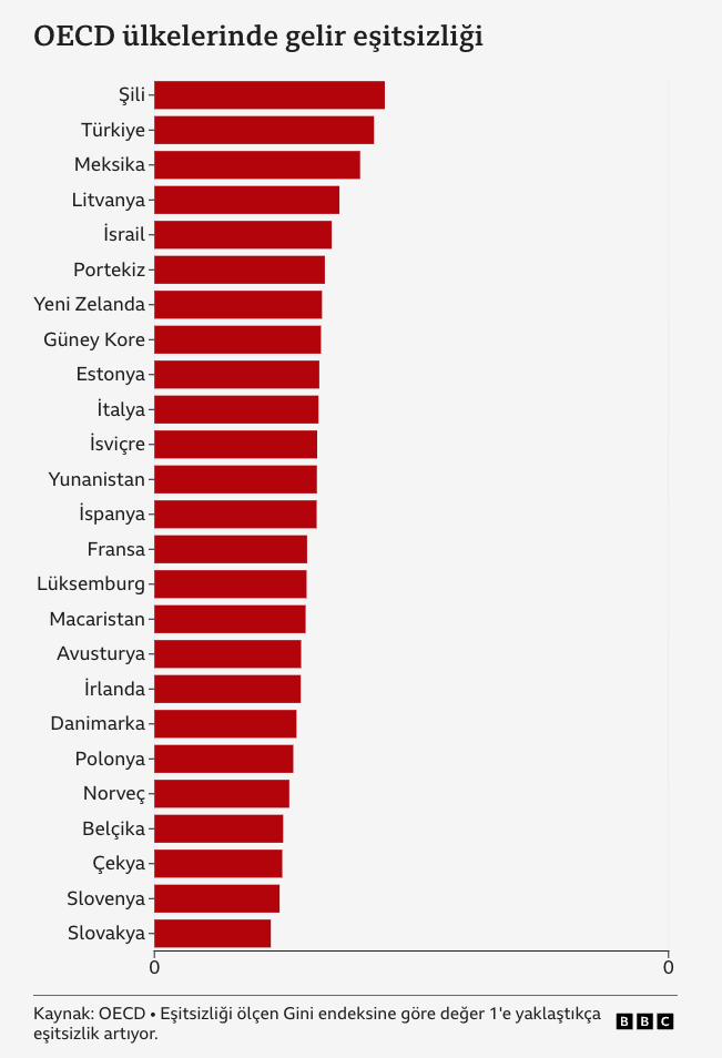 Ekonomik İşbirliği ve Kalkınma Örgütü’nün (OECD) verilerine göre Türkiye gelir eşitsizliğinin Şili’den sonra en kötü durumunda olduğu ikinci ülke.