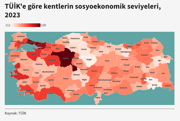 “Ülkenin batısı ve güneyi sosyoekonomik seviye açısından kuzeyine ve doğusuna göre daha yüksek. Üç büyük şehrin öne çıkması bence sürpriz değil fakat bu iller dışında yüksek seviyeye sahip çok fazla sayıda ilin neden olmadığı bence sorulması gereken bir soru” diye ekliyor.