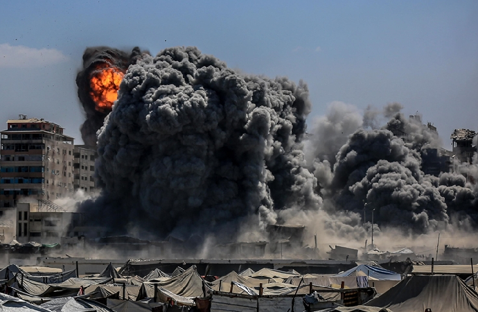 İşgalci İsrail ordusu, Gazze kentinde direnmeye devam eden Filistin halkını sürgüne zorlamak amacıyla konut ve çok katlı binaları hedef alan barbar saldırılarını sürdürüyor.