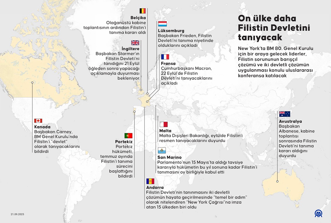 New York’ta yarın yapılacak BM 80. Genel Kurulunda 10 ülkenin daha Filistin’i tanımasıyla, Filistin Devletini tanıyan ülke sayısının 157’ye çıkması öngörülüyor.
