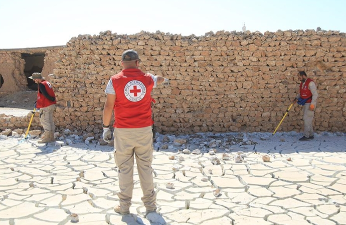 Suriye’nin farklı bölgelerinde çalışmalarını sürdüren, merkezi İsviçre’de bulunan Uluslararası Kızılhaç Komitesi (ICRC)’nin, iç savaştan geride kalan patlamamış mühimmatların tespiti ve imhası için mayın arama faaliyeti ile uğraştığı bildirildi.