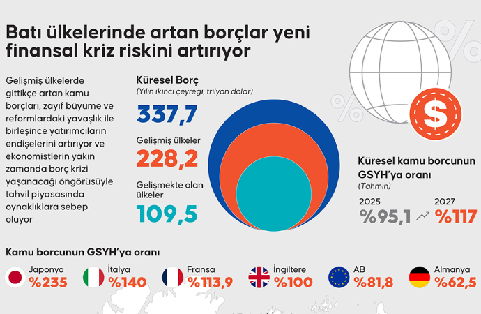 Sürekli ‘gelişmiş’ oldukları iddiasında bulunan batılı ülkelerin artan kamu borçları, küresel finansçıların gözünü korkutuyor. Ekonomistler yakın zamanda borç krizi yaşanacağı öngörüsünde bulunuyor.