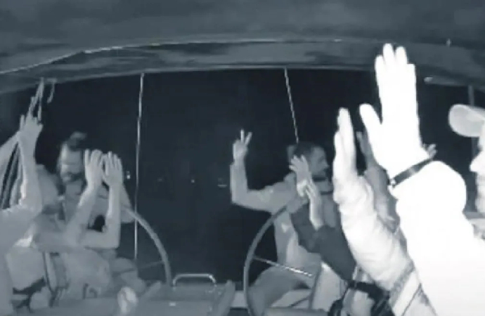 “Yaklaşan İsrail gemilerine özgürlük ve direnişin evrensel sembolü haline gelmiş olan “Bella Ciao” şarkısı ve “Free Palestine” sloganlarıyla karşılık veriyoruz.” diyen Eyüpoğlu, İsrailli unsurların, gemilerine önce büyük spot ışıklar tutarak yaklaştığını, daha sonra geri gittiğini söyledi.