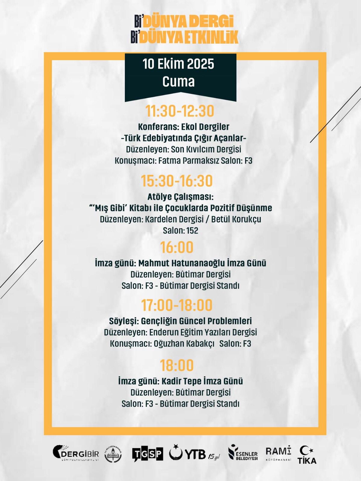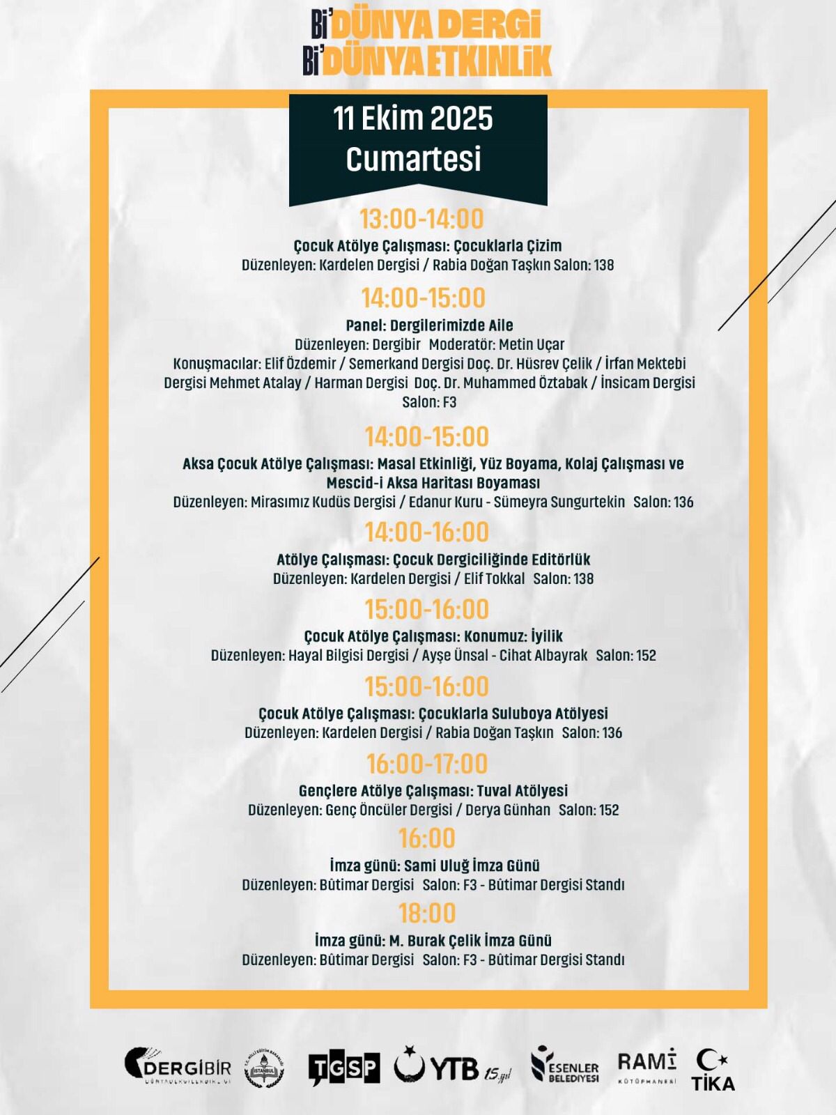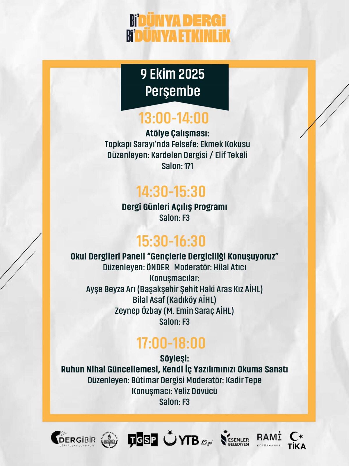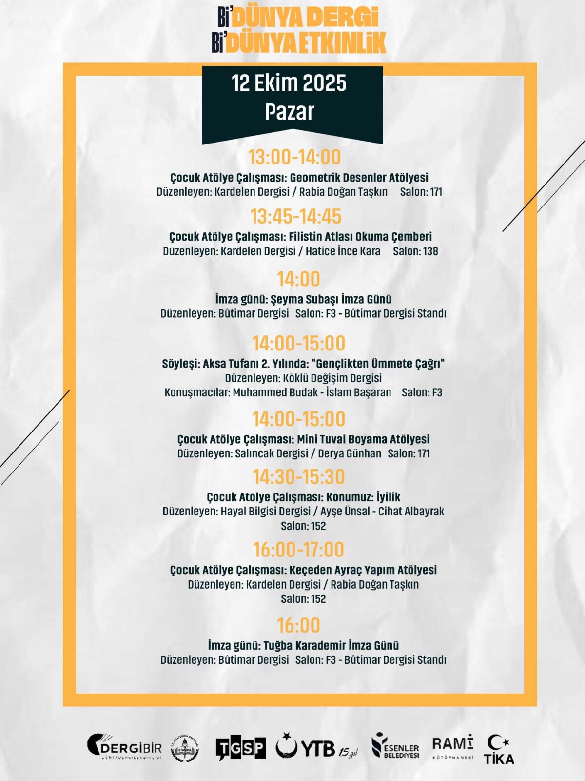 Gazze temalı oturumlar, dergi stantlarında gerçekleştirilecek mini etkinlikler ve sürpriz buluşmalarla zengin bir içerik ziyaretçilere sunulacak.