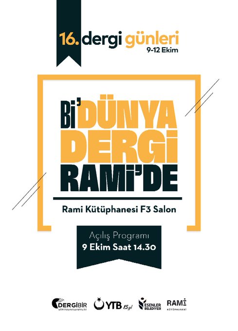 “Bi’ Dünya Dergi Rami’de” temasıyla şair, yazar, çizer, tasarımcı ve yayıncıları bir araya getiren Dergiler Fuarı bugün resmi olarak saat 14.30’da Rami Kütüphanesi’nde kapılarını açıyor. Fuarı ziyaret ise saat 10.00’dan itibaren yapılabilecek. Fuarın son günü ise 12 Ekim Pazar günü…