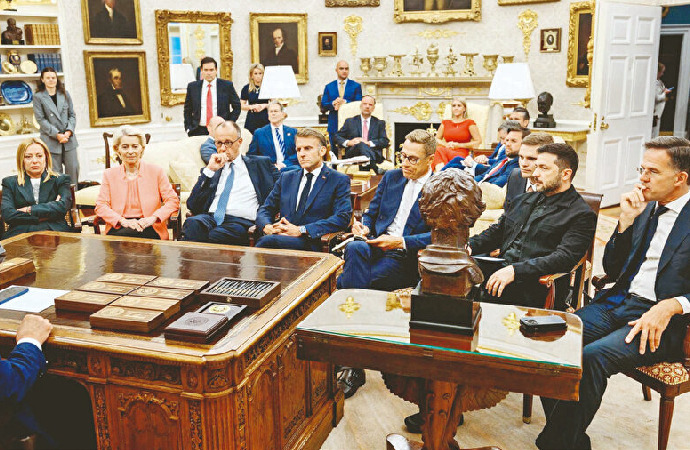 Hiçbir Avrupalı lider Trump’ın sekiz ayda sekiz savaşı sona erdirdiği yönündeki abartılı iddialarını kamuoyu önünde yalanlamadı, çok taraflı kurallara dayalı serbest ticaret düzenini yıkmasını, Birleşmiş Milletler’e saldırmasını veya dünya çapında siyasi kan davaları peşinde koşmak için gümrük vergilerini seçici bir şekilde kullanmasını eleştirmedi.