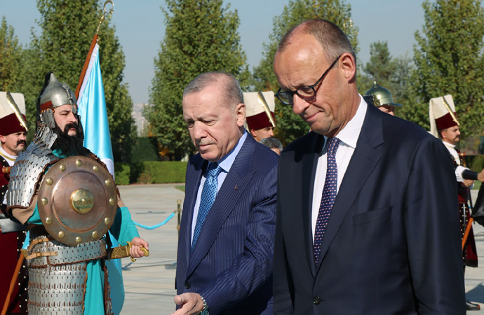 Merz, açılış ziyaretinin başında dün sabah saatlerinde Atatürk’ün mozolesine çelenk bıraktı. Anıtkabir defterine şunları yazdı: “Onun fikirleri, Federal Almanya Cumhuriyeti ile Türkiye Cumhuriyeti arasındaki derin dostluğu bugün de etkilemeye devam etmektedir.”