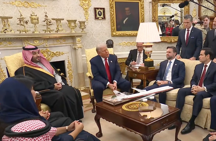 Yaklaşık 7 yıllık bir aranın ardından Muhammed bin Selman’ı ilk kez Beyaz Saray’da ağırlayan Trump, Suudi Arabistan ile harika ilişkilere sahip olduklarını ve Muhammed bin Selman’ın “çok yakın dostu” olduğunu öne sürdü. Trump, “Bugün Oval Ofis’te son derece saygın bir adam var, uzun zamandır arkadaşım, çok iyi bir dostum. Yaptığı işlerden dolayı çok gurur duyuyorum. İnsan hakları ve diğer her konuda yaptığı şeyler inanılmaz.” şeklinde konuştu.