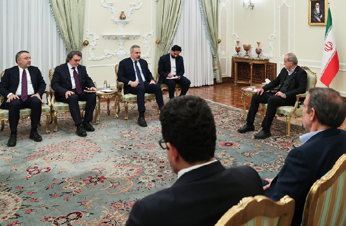 Hakan Fidan ayrıca İran Ulusal Güvenlik Yüksek Konseyi Genel Sekreteri Ali Laricani ile bir araya geldi. Görüşmede taraflar, bölgenin önemli güvenlik konularına ilişkin kapsamlı bir görüş alışverişinde bulundu. Suriye ve Gazze’deki son gelişmeler ile İsrail’in saldırgan tutumu müzakerenin ana başlıklarını oluşturdu. İki yetkili, bölgesel krizlerin yönetimi için Ankara ve Tahran arasındaki koordinasyonun önemine değindi.