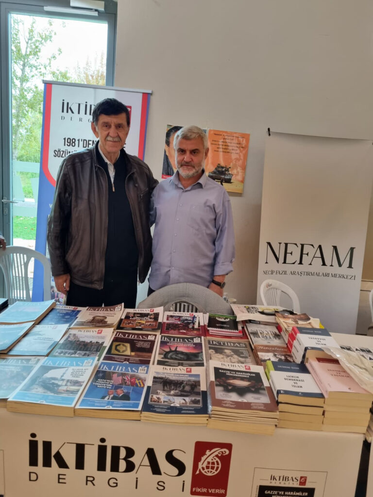 Geçtiğimiz yıl genç yaşta yitirdiğimiz Vuslat Dergisi yayın yönetmeni İlhami Pınar kardeşimle fuarlarda hep yan yana idik. Bu yıl İktibas’la Vuslat standları yine birbirine yakındı, aramızda bir stant vardı. Oradaki kardeşlere merhum İlhami’yle yine bir dergi fuarındaki fotoğrafımızı gösterdim, kendisini hayırla, özlemle yâd ettik.