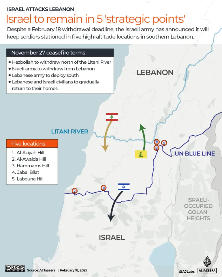 İsrail, Lübnan’da düzenli hava saldırılarını sürdürüyor, genellikle Hizbullah üyelerini ve tesislerini hedef aldığını söylüyor ve ateşkesin tamamen çekilmesi şartına rağmen güneydeki beş bölgede asker bulunduruyor.