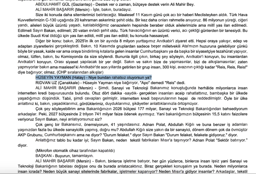 AKP Genel Başkan Yardımcısı Hüseyin Yayman bu sözler üzerine “Niye bundan rahatsız oluyorsun ya?” diye sordu. Bu sözler, TBMM TV canlı yayınında duyulmadı ancak Meclis tutanaklarında yer aldı.