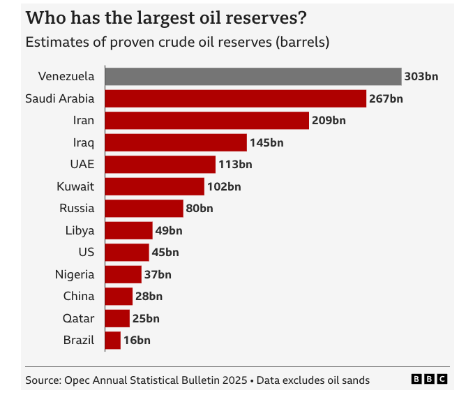 Tahmini 303 milyar varil ile Venezuela, dünyanın en büyük kanıtlanmış petrol rezervlerine sahip ülkesidir. Ancak ülkenin bugün ürettiği petrol miktarı buna kıyasla çok azdır.