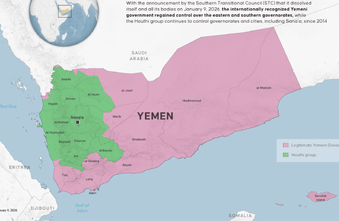 Birleşik Arap Emirlikleri himayesindeki Güney Geçiş Konseyi’nin, Suudi Arabistan’ın devreye girmesi ile, 9 Ocak’ta kendisini ve tüm kurumlarını feshettiğini açıklamasının ardından Yemen’de fiili kontrol dengesi yeniden şekil aldı. Kuzeyde Ensarullah, doğuda ve güneyde ise Suudi Arabistan destekli devrik hükümet kontrol sahibi.