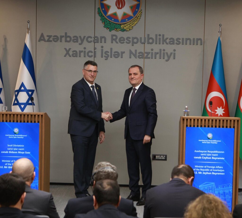 İsrail’le güçlü ilişkilerini sürdüren Azerbaycan Cumhurbaşkanı İlham Aliyev, İsrail Dışişleri Bakanı Gideon Saar’ı ağırladı. İsrail Dışişleri Bakanlığı, Aliyev için ‘vizyoner bir lider’ nitelemesi yaptı.