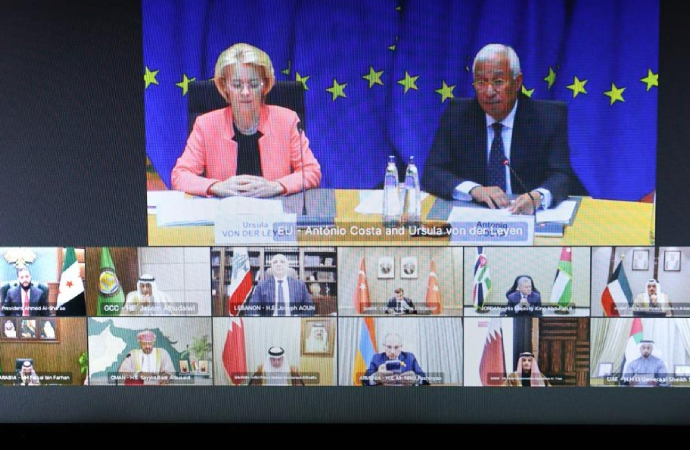 Toplantıya Avrupa Konseyi Başkanı António Costa, Avrupa Komisyonu Başkanı Ursula von der Leyen ile Suriye, Türkiye, Suudi Arabistan, Birleşik Arap Emirlikleri, Ürdün, Mısır, Bahreyn, Lübnan, Ermenistan, Irak, Katar, Kuveyt ve Umman liderleri katıldı.