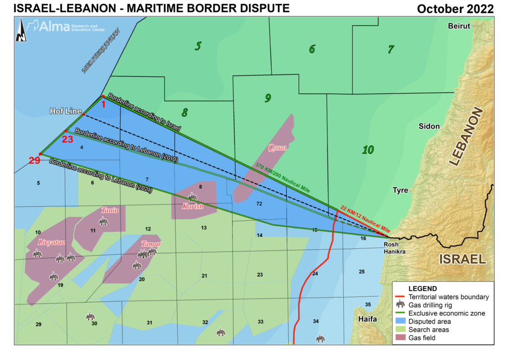 İsrail ile Lübnan arasında yaklaşık 860 kilometrekarelik deniz sahası anlaşmazlığı bulunuyor. İki ülke de bu bölgenin kıta sahanlığında hak iddia ediyor. İsrail, Lübnan hükümetinin lisanslama sürecine başladığı 5 bloktan üçünün İsrail kıta sahanlığı sınır bölgesinde yer aldığını öne sürüyor. Lübnan tarafı ise tartışmalı bölgenin 2 bin 290 kilometrekare olduğunu savunuyor.
