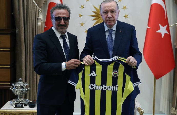 Türkiye doğumlu Amerikalı milyarder Hamdi Ulukaya ile Cumhurbaşkanı Erdoğan arasında Cumhurbaşkanlığı Külliyesi’nde gerçekleşen görüşmede Ulukaya, Erdoğan’a üzerinde kendi şirketinin reklamı olan Fenerbahçe formasını hediye etti.