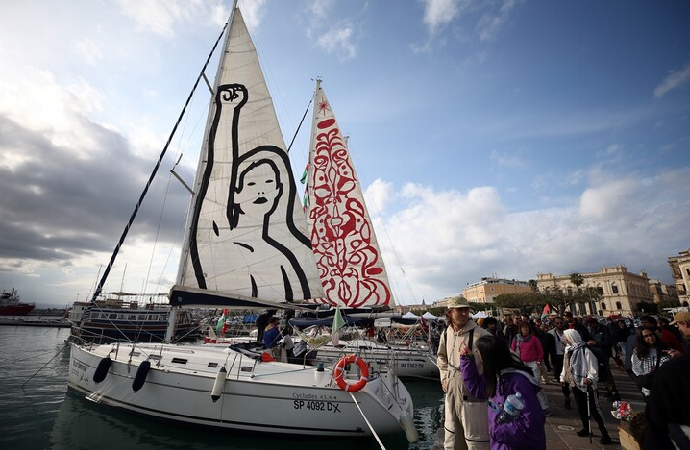 İspanya’nın Barselona kentinden 12 Nisan’da yola çıkan, Greenpeace ile Open Arms’ın organizatör olarak yer aldığı “Küresel Sumud Filosu 2026 Bahar Misyonu” tekneleri, İtalya’nın Sicilya Adası’na ulaştı. Teknelerden birinin yelkeninde yer alan eylemci kadın figürü de dikkat çekti.