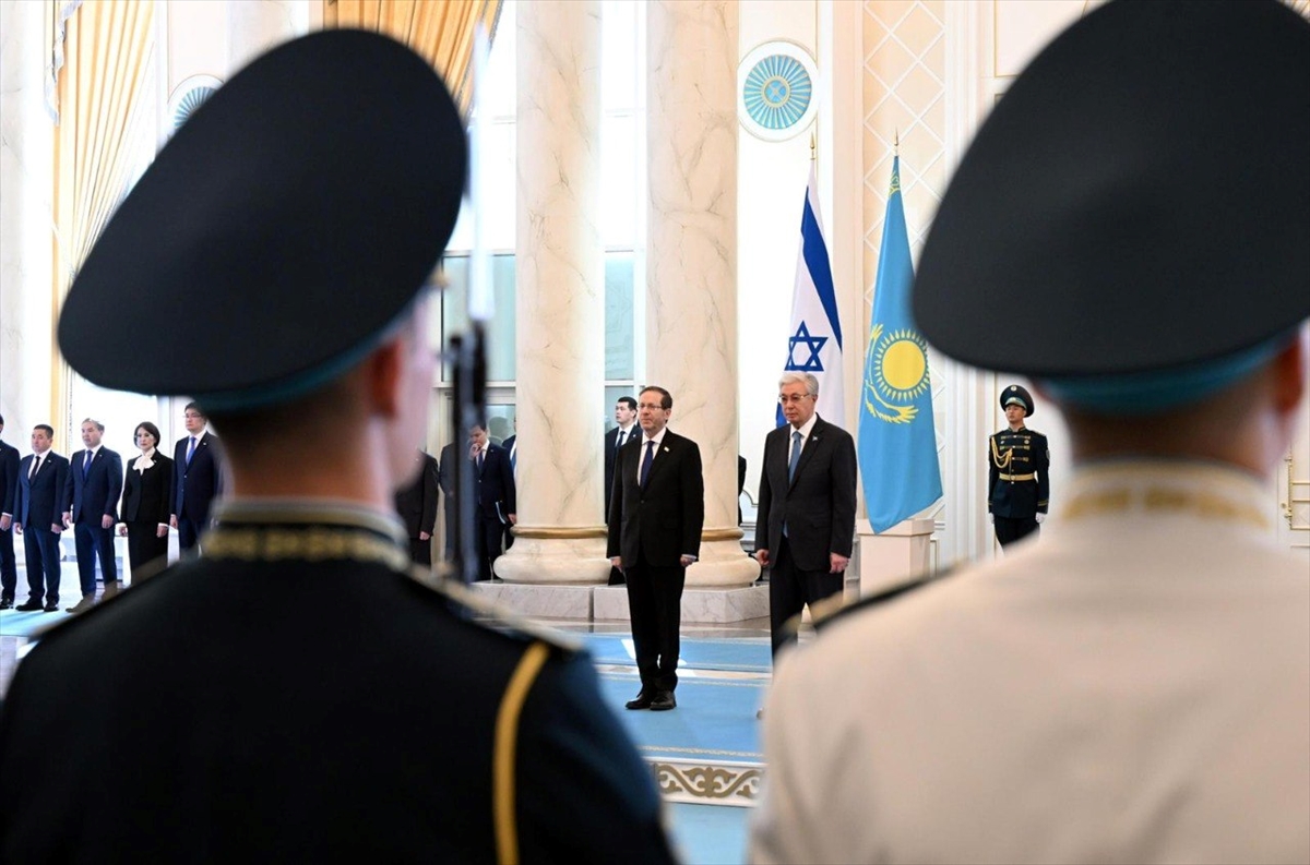 Kazakistan Cumhurbaşkanlığından yapılan açıklamaya göre, Cumhurbaşkanlığı Sarayı Akorda’da siyonist lider Herzog için resmi karşılama töreni düzenlendi. Kazakistan Cumhurbaşkanı Tokayev, Herzog’la tören sonrası baş başa görüşme gerçekleştirdi.